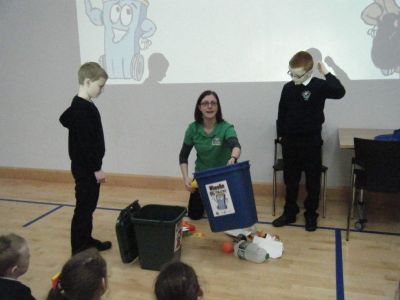 Thanks to Cathy Gorman from 'Eco Schools- Keep Northern Ireland Beautiful' who came into school today to speak to the Primary 4 and Primary 5 children. The Eco-Committee also took part in todays workshop all about food waste management. Cathy was very impressed when the children spoke about the different measures we take in school to reduce and recycle our food waste.